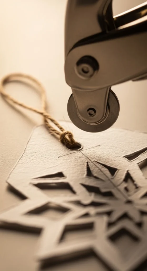 For flat ornaments and banners, hole punching is faster than gluing loops. Punch near the top center, then thread twine through and tie.