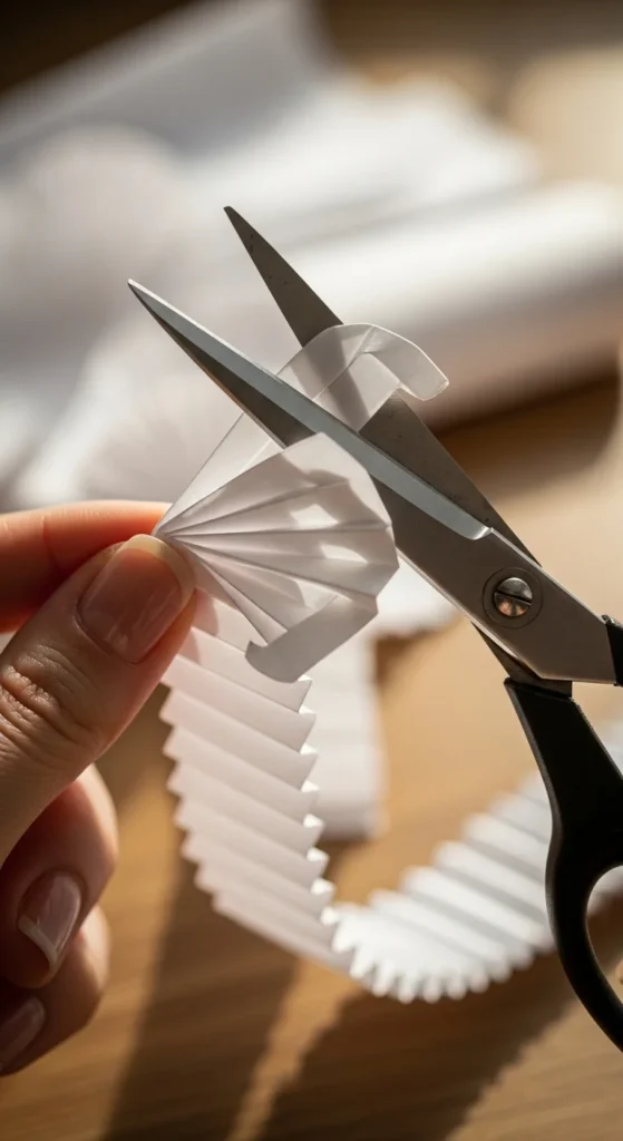 Before you assemble the rosette, trim the ends of your accordion strip. Round the corners, cut points, or add a gentle wave.