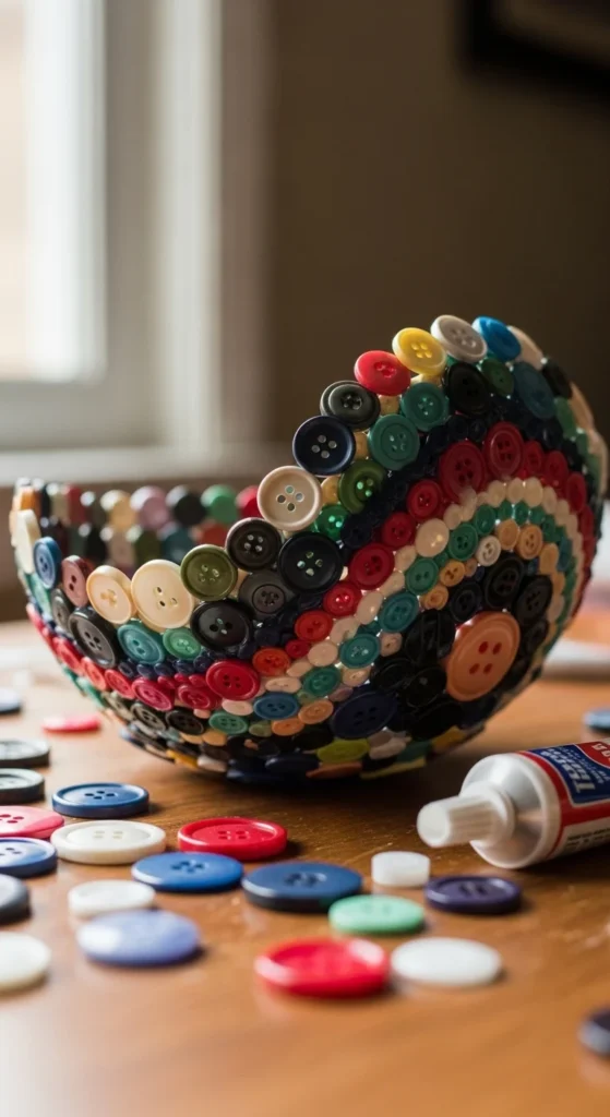 A button bowl turns spare sewing supplies into decorative storage.