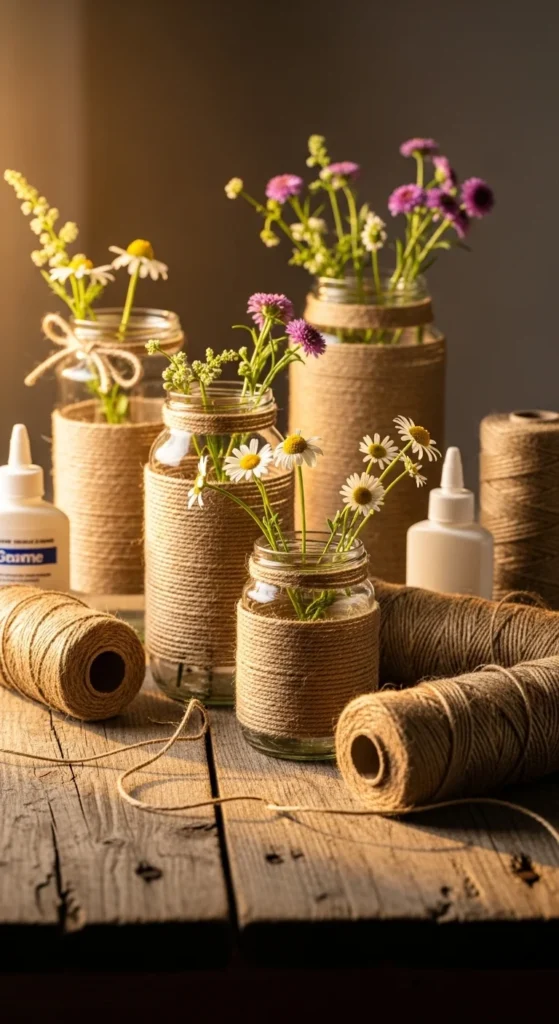 13. Twine-Wrapped Glass Vases