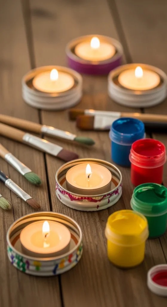 Jar lids can become charming candle holders.