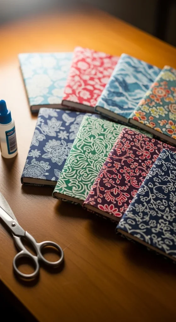 Plain notebooks can look beautiful with fabric covers.