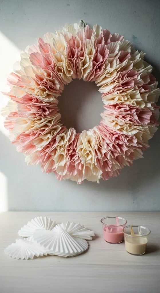 Coffee filters create full decorative wreaths with very little cost.