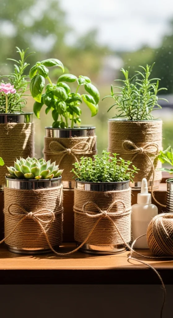 8. Twine-Wrapped Can Planters