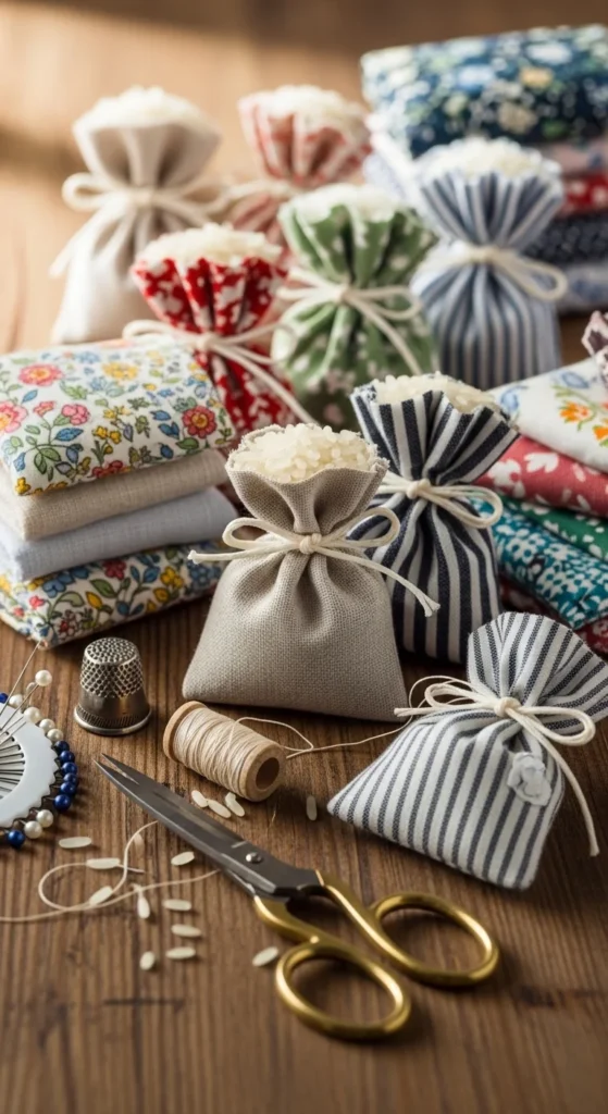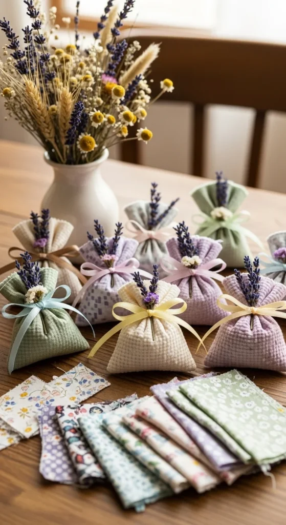 Fill the pouches with dried lavender, rose petals, or other fragrant herbs.