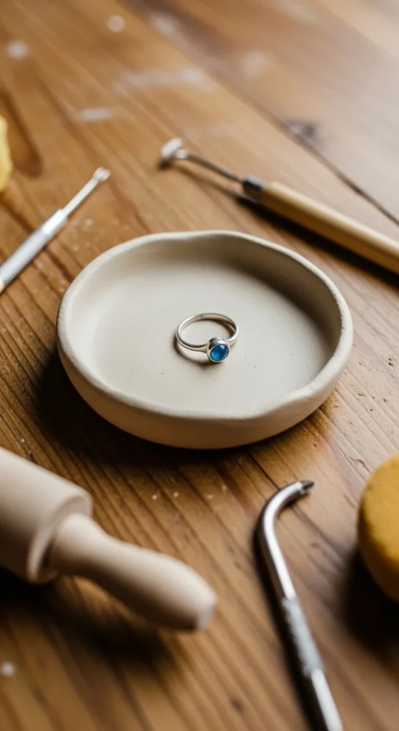 Roll air-dry clay flat and cut a small circle. Place it over a bowl so it dries in a curved shape.