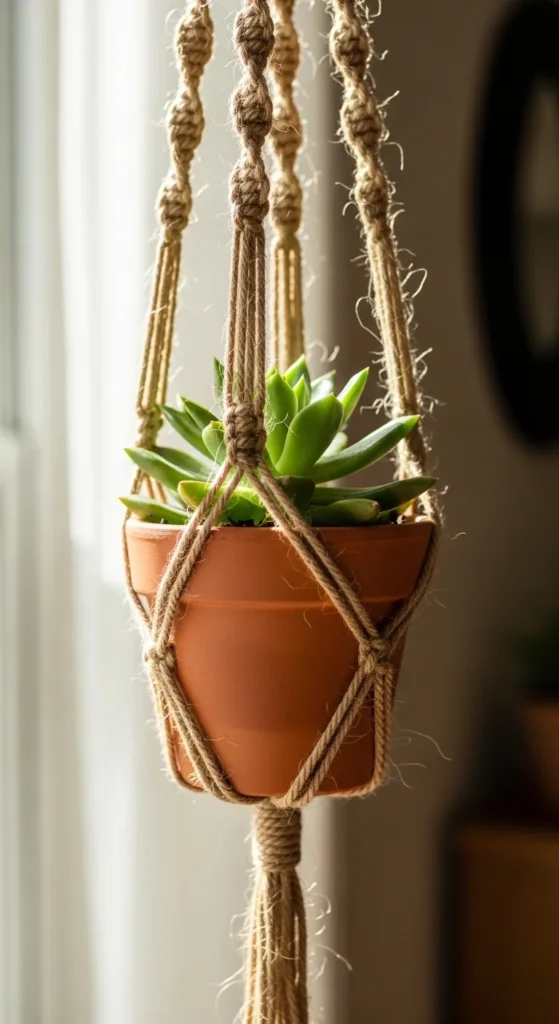 Crochet plant hangers combine gentle hand motion with practical decor. Even beginners can learn the basic loops quickly.