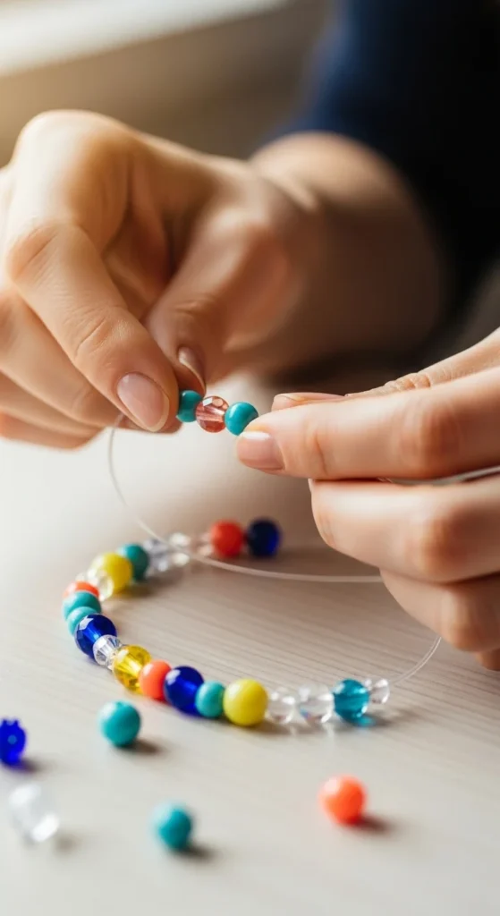 Beaded bracelets are calm, repetitive, and very beginner friendly. They are perfect when you want a quick creative break without a big setup.