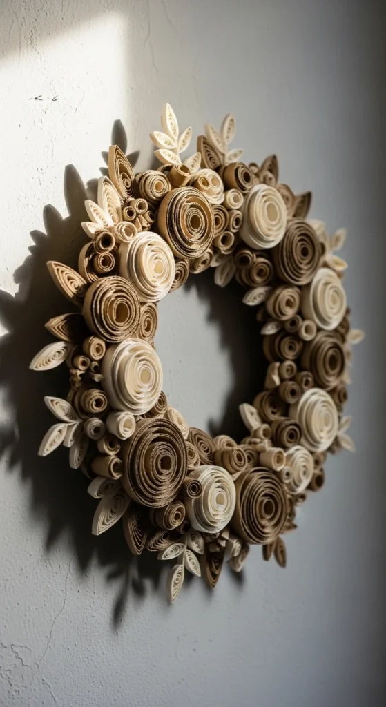 This wreath turns everyday cardboard into decorative wall art. It is a great no-buy craft using household materials.