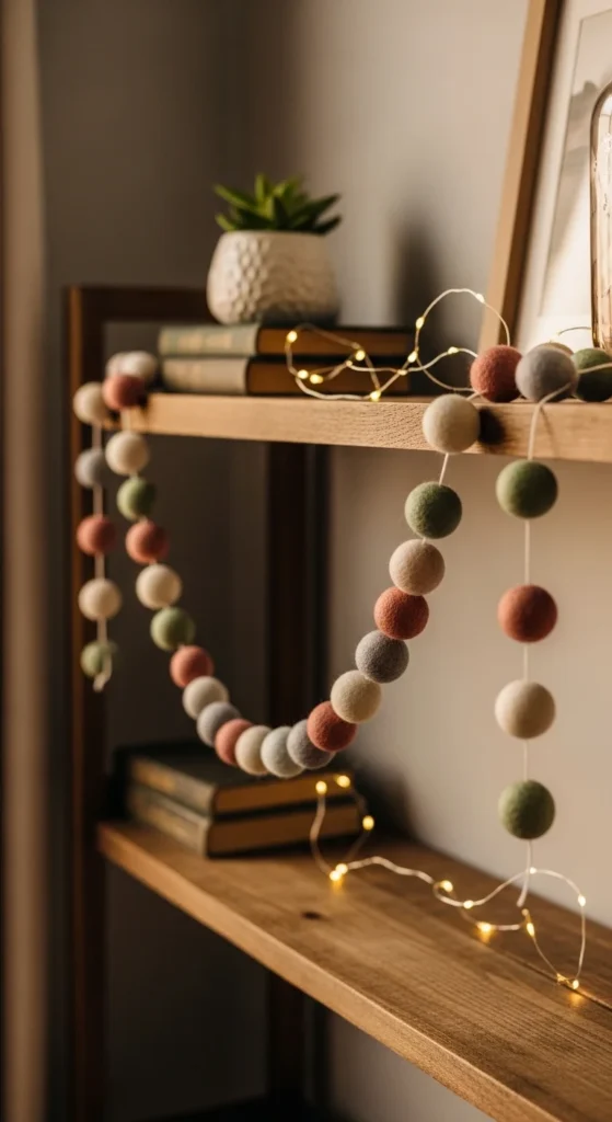 Thread pre-made felt balls onto strong string using a large needle. Space them evenly for a balanced look.