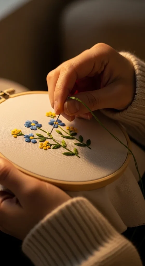 Embroidery hoop art is calm, portable, and beginner friendly. The slow stitching rhythm helps your mind settle after a busy day.
