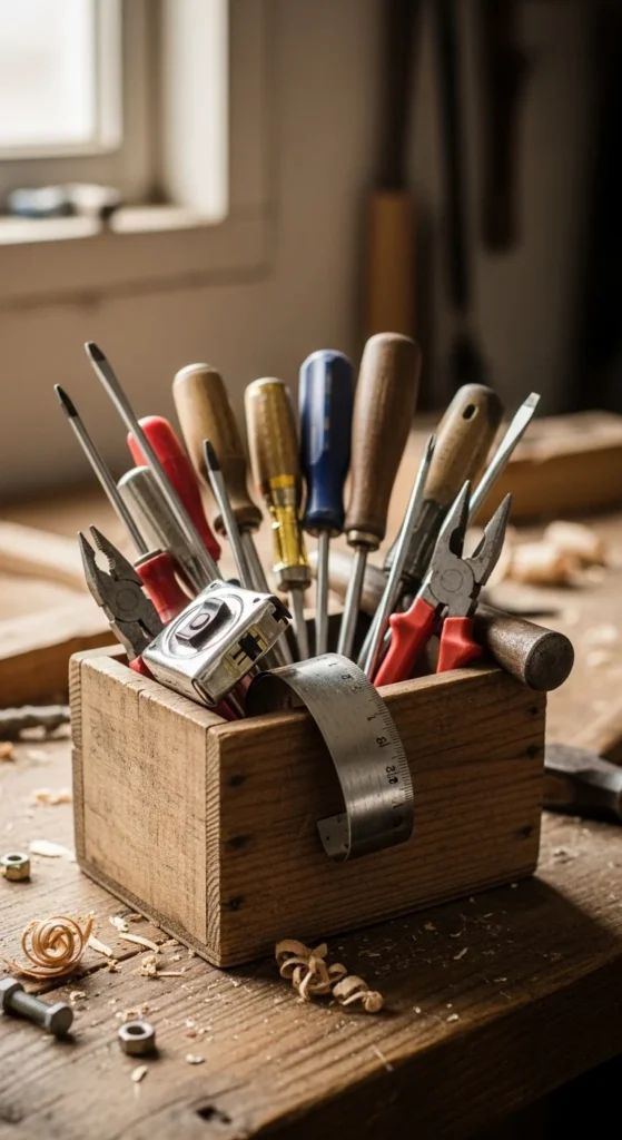 Fill the box with small items such as screwdrivers, tape measure, or screws.