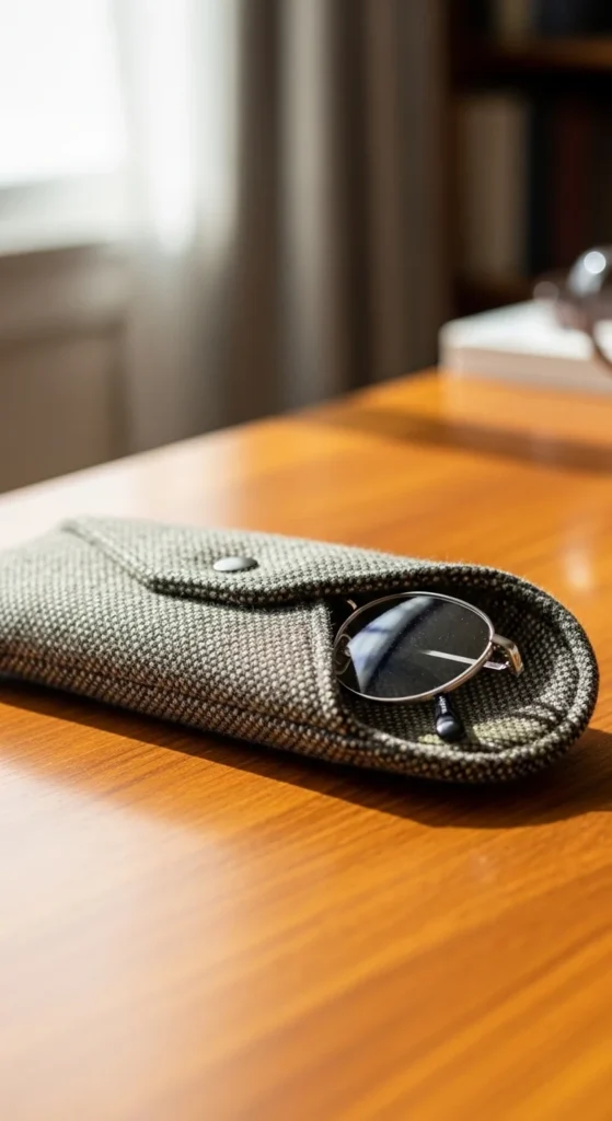 A fabric glasses case protects Dad’s reading glasses from scratches.