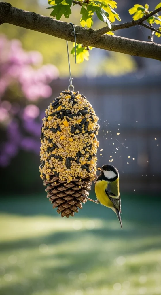 A pine cone bird feeder is a thoughtful gift for dads who enjoy watching wildlife.