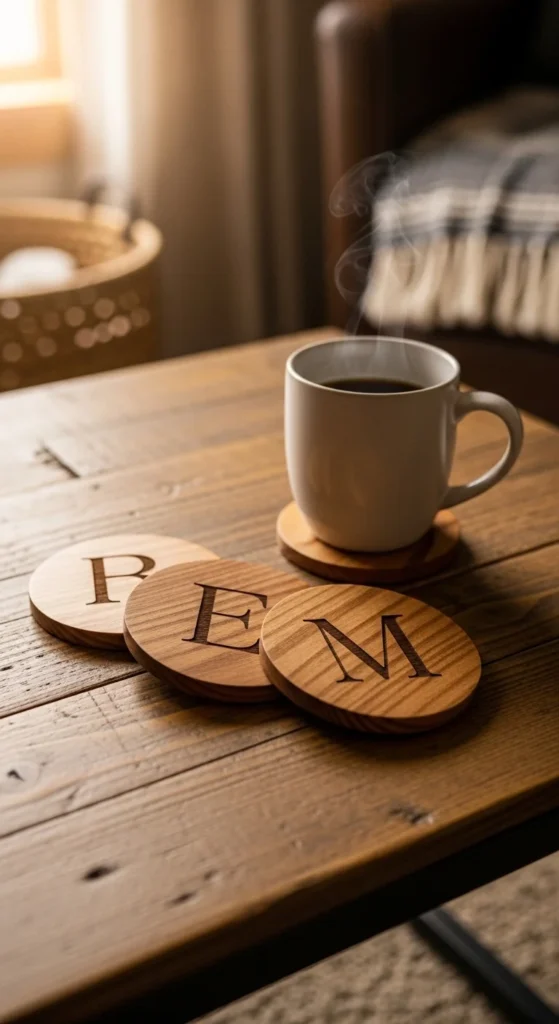 Wooden coasters are one of the easiest DIY gifts that still feel refined and useful. They protect tables and look great on a desk, coffee table, or nightstand.