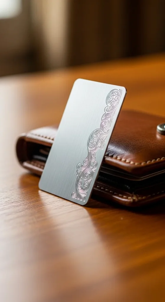 A wallet card insert carries a small engraved message.