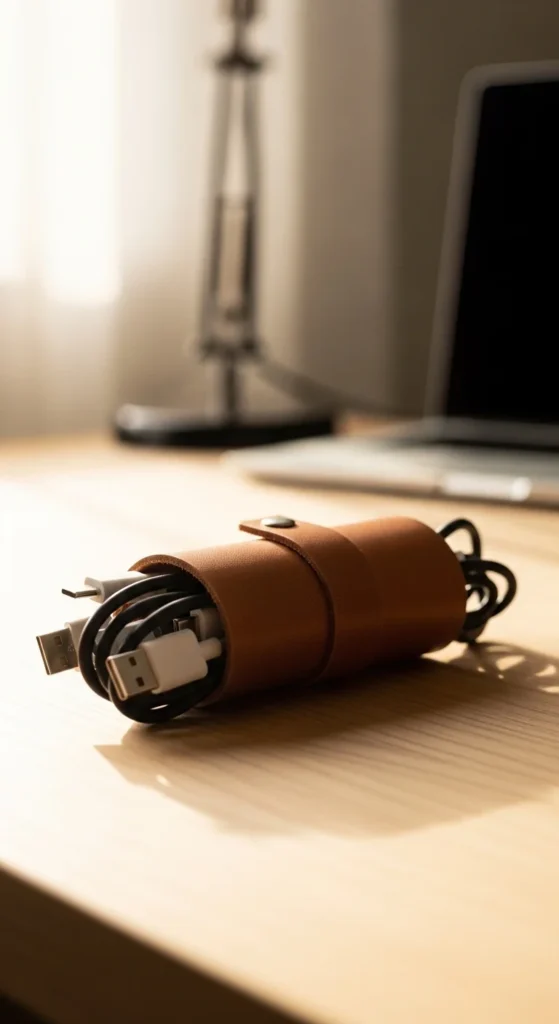 15. Leather Cord Organizer