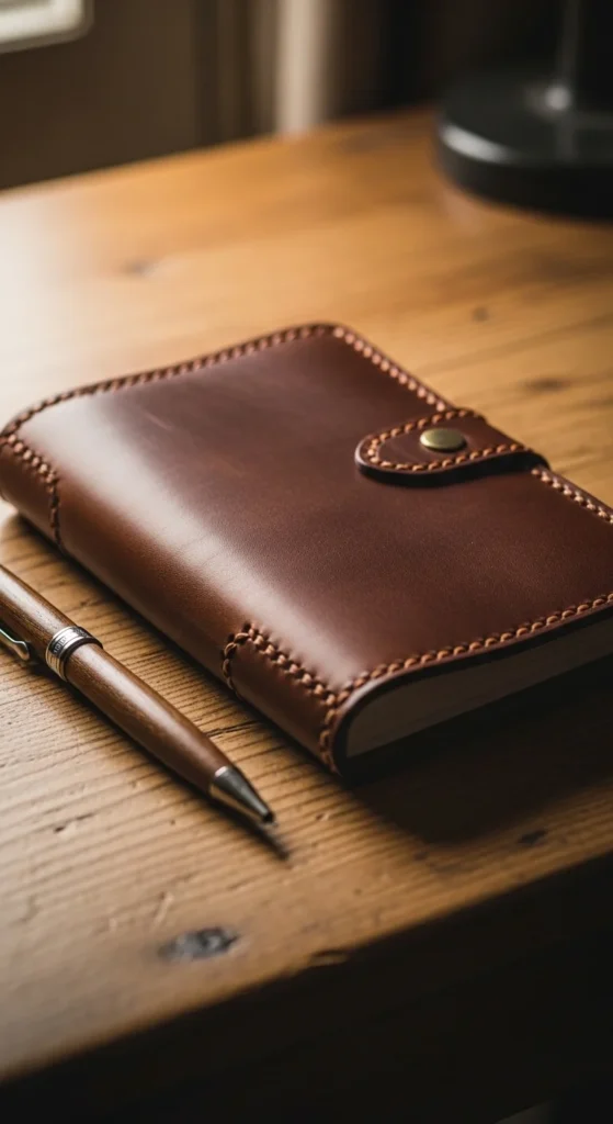 Wrap a notebook in leather or fabric.