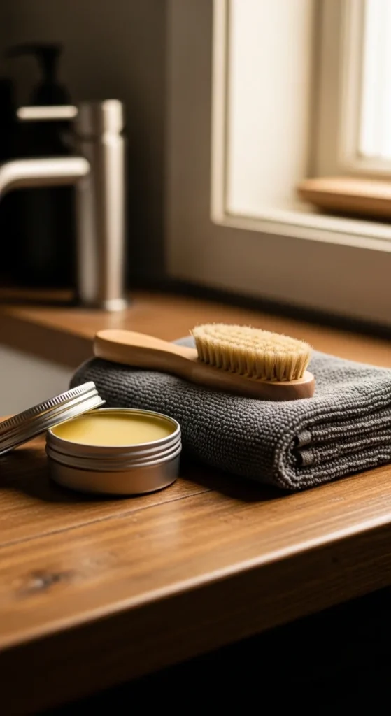 Start with a small box or pouch. Include a homemade beard balm made from beeswax, shea butter, and carrier oil.