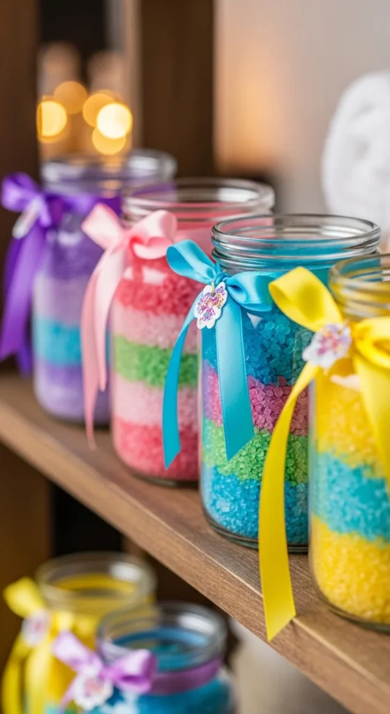 Mix Epsom salt, sea salt, and essential oils to make bath salts. Layer colors for visual appeal and place in a small jar. Add a label with instructions or a loving message. This self-care gift is simple, inexpensive ($5–8), and makes an everyday routine feel special.
