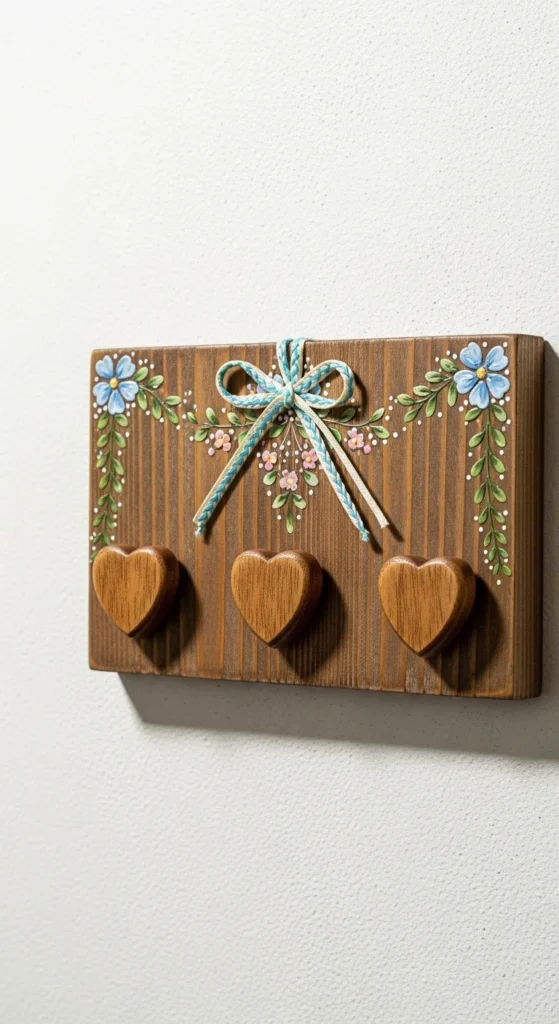 Create a key hanger from a wooden plank and hooks. Paint hearts or initials for personalization. It’s a practical and decorative gift, useful every day. Budget-friendly at around $10–12, and the craft can be completed in under an hour, making it perfect for last-minute gift-giving.
