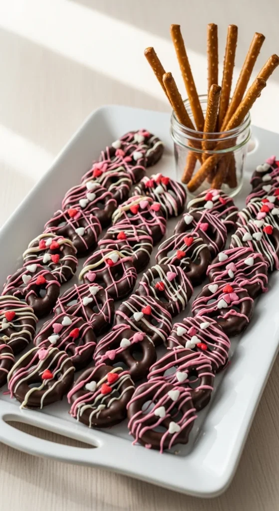 Dip pretzels in chocolate and add sprinkles for a sweet, crunchy treat. Package in a small box or bag tied with ribbon. This quick edible gift costs only $5–8 and takes less than 30 minutes. Perfect for friends, partners, or coworkers, it’s fun, simple, and festive.