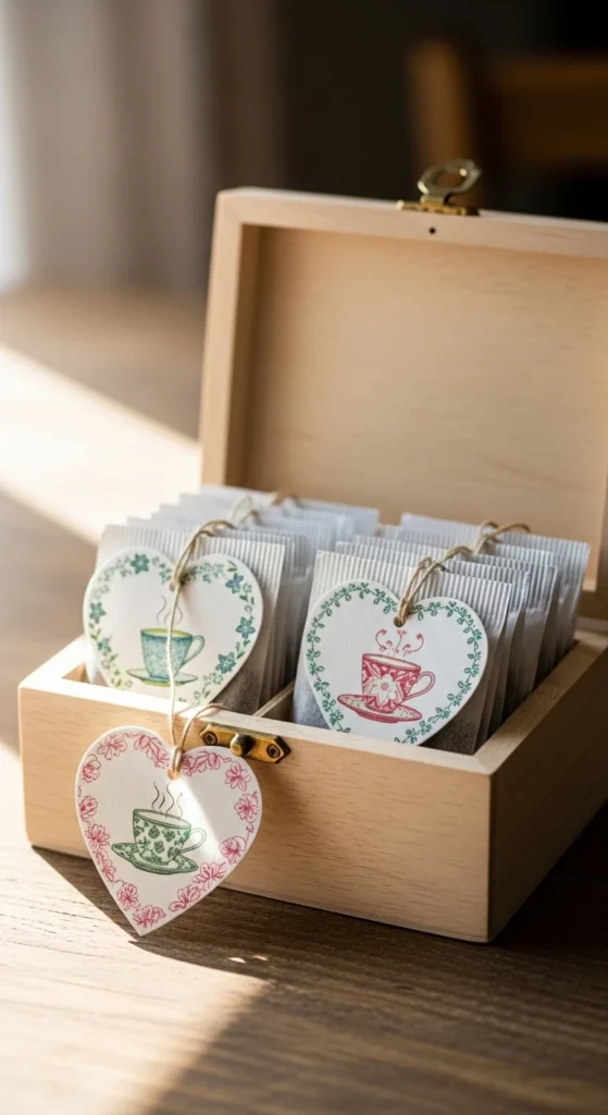 Assemble a set of premium or flavored tea bags with custom heart-shaped tags. Include a short handwritten note or a “tea for two” theme. Package in a small box or jar for a beautiful, edible gift. Total cost is $5–12 depending on tea choice. It’s simple, thoughtful, and works well for someone who enjoys cozy moments.