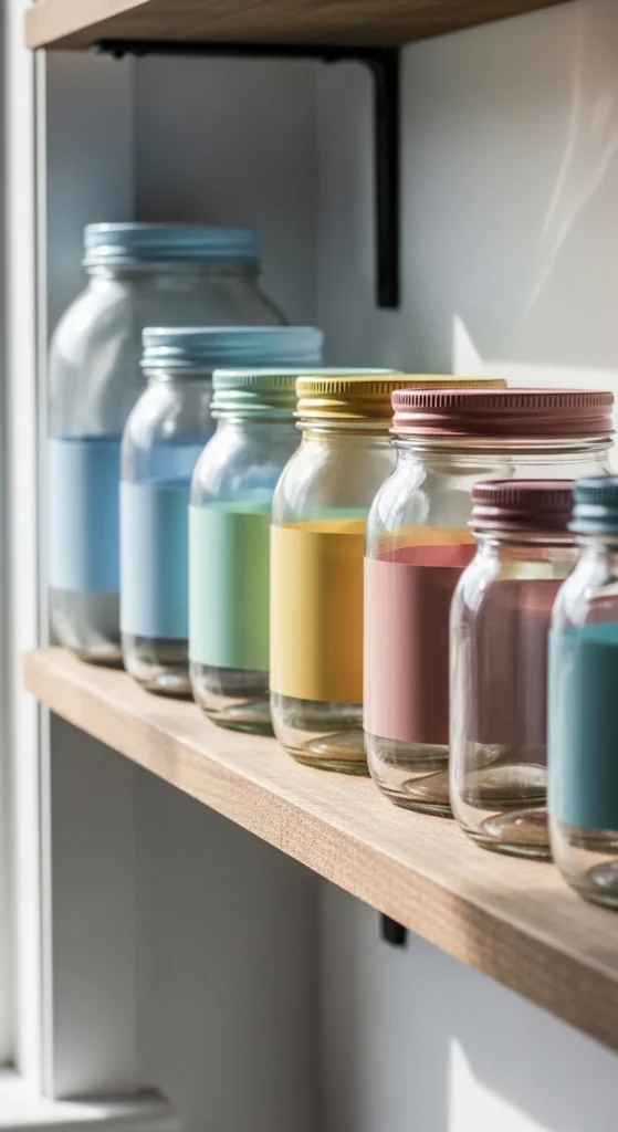 DIY example: line three jars on a bathroom shelf.