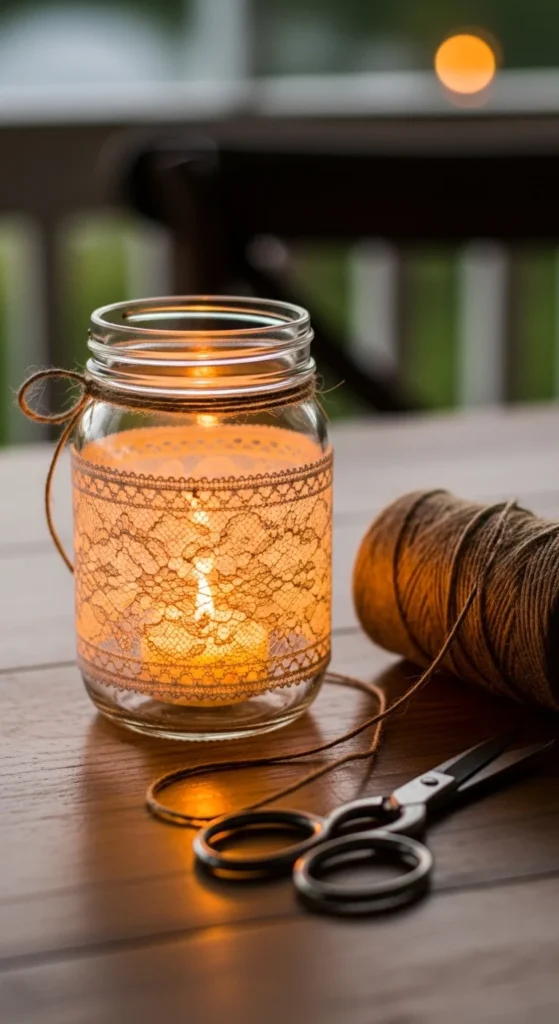 3) Lace-Wrapped Mason Jar Lantern