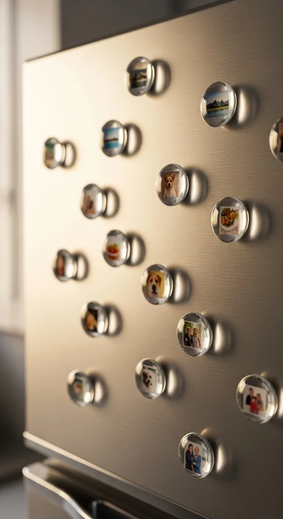 DIY example: make magnets of family faces for gifting, or a matching set in your kitchen colors.