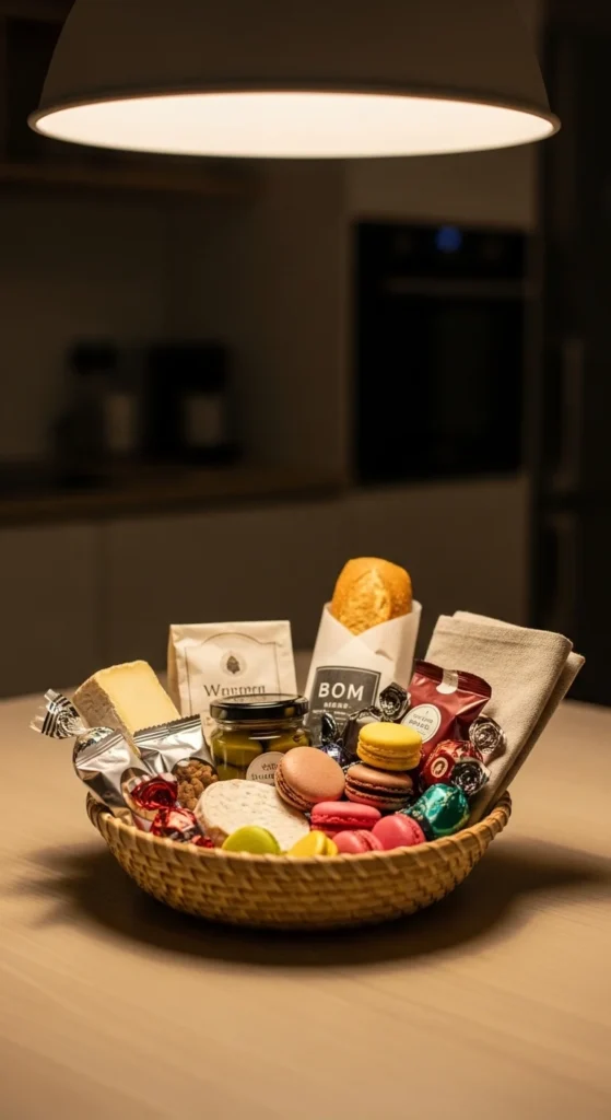 Gather favorite treats in a basket. Add a tag. Simple and thoughtful.