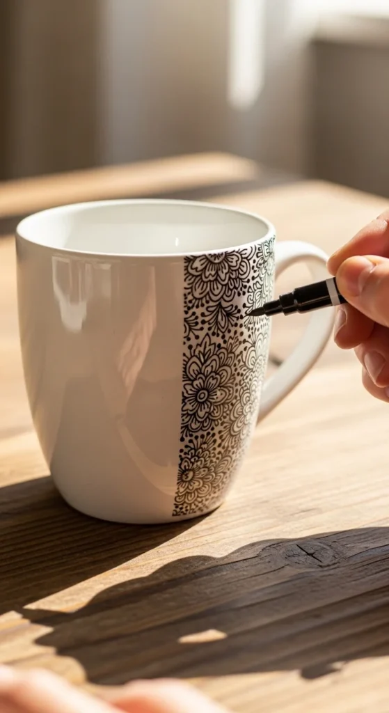 Use paint pens for simple patterns or initials. Bake to set design.