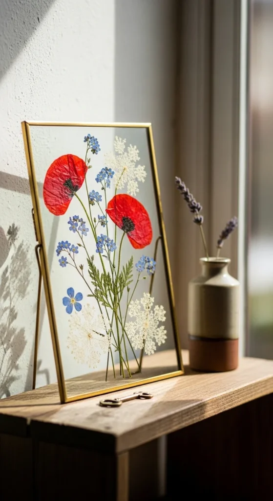 Press flowers and frame them. Simple, nature-inspired.