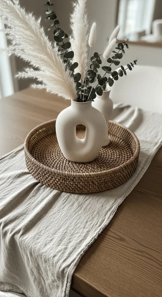 - Pair smooth ceramics with woven pieces