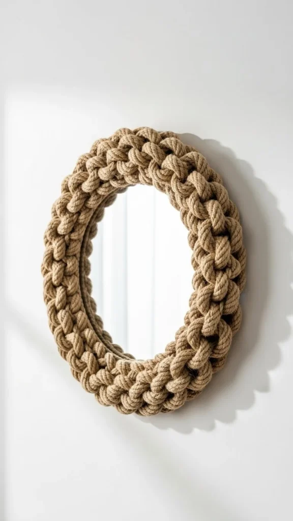 If you love cozy, handmade vibes, rope and yarn are your best friends. This method works especially well for round or oval mirrors.
