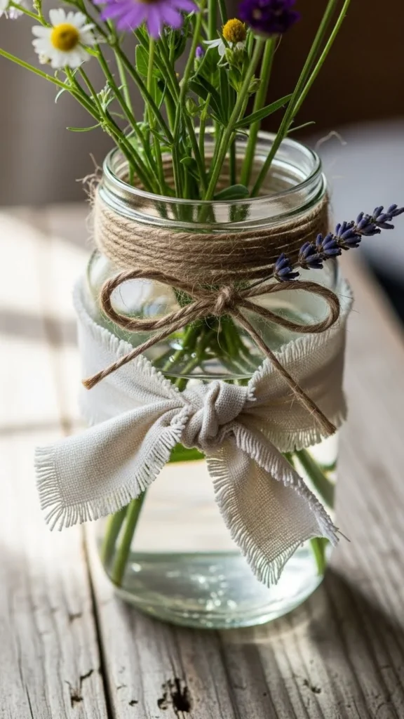 - Wrap jars with twine or rope