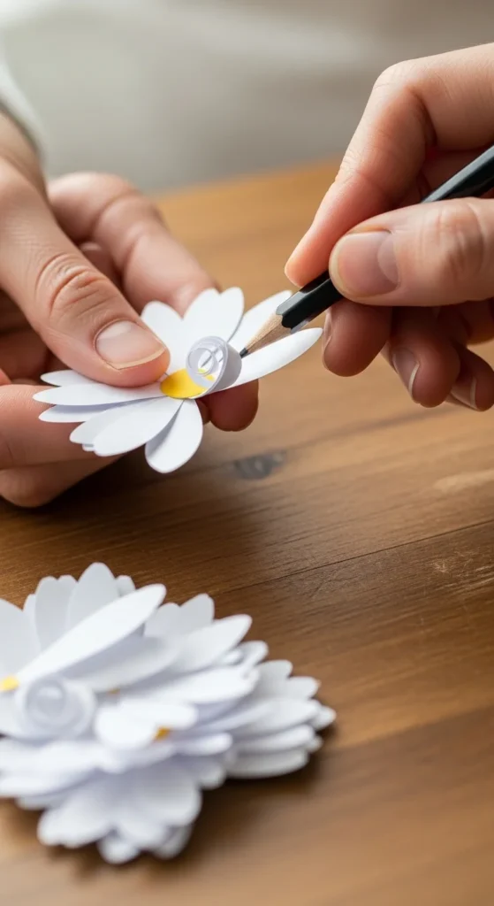 Paper daisies are perfect for beginners because the steps are simple but the results look beautiful. Focus on three things: fluffy fringed centers, gently curled petals, and clean layered placement. Once you get the rhythm, you can make a full bouquet in an afternoon.