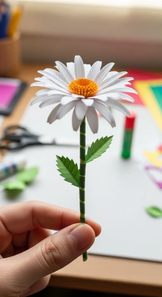 Paper daisies are one of the easiest flowers to make, but when done right, they look surprisingly realistic. With layered white petals, a fluffy yellow center, and simple green stems, these flowers work beautifully in bouquets, wreaths, and spring decor.