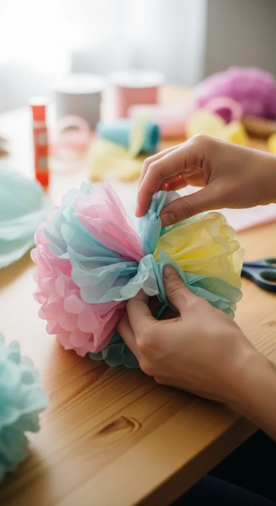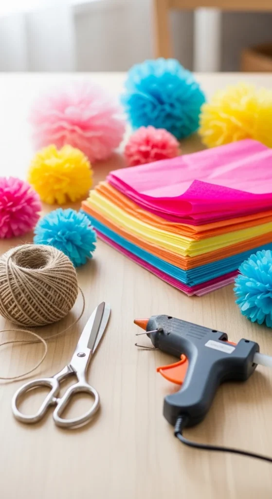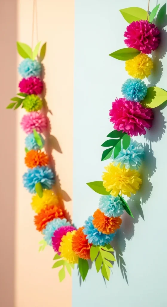 A paper flower garland is one of the fastest ways to make a party space feel styled and festive. With simple tissue pom-poms, balanced spacing, and a sturdy string base, you can create decor that looks far more expensive than it is.