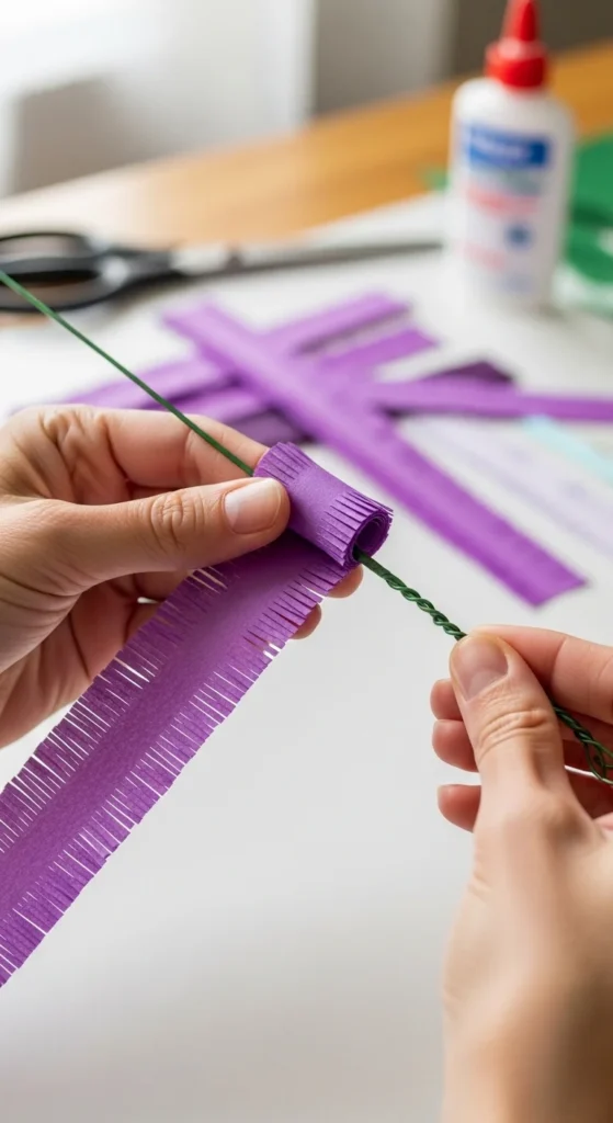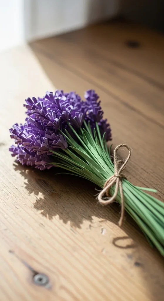 Paper lavender is one of the easiest flowers to craft, yet it looks charming and detailed in rustic decor. With just a few fringe cuts and a simple rolling technique, you can create beautiful lavender bundles for vases, gift toppers, or farmhouse displays.