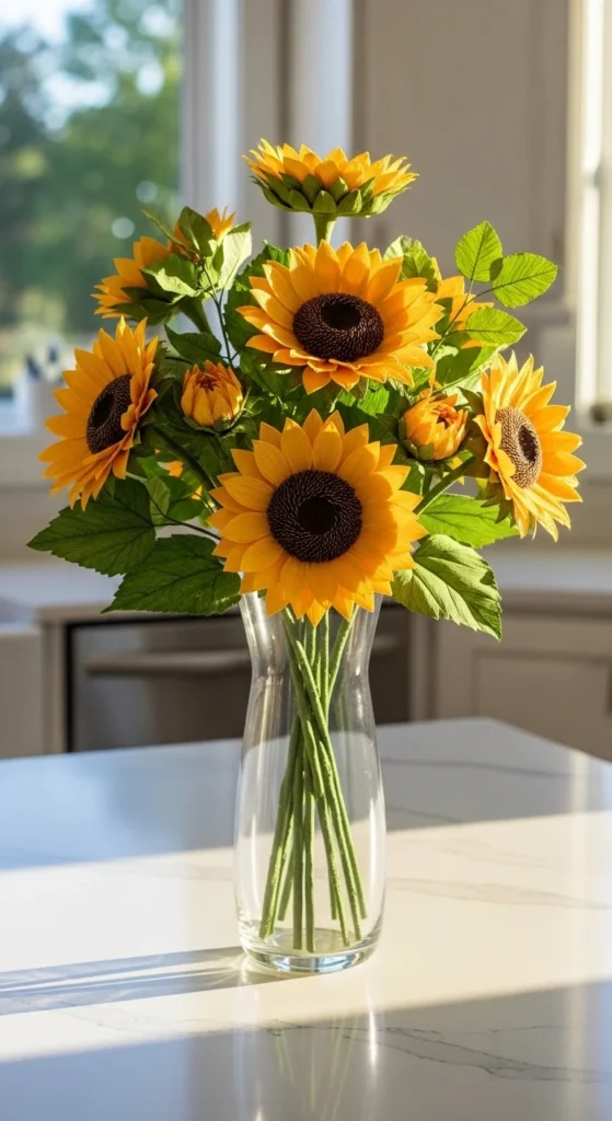 Paper sunflowers are the happiest kind of DIY. They’re bold, bright, and they instantly make a room feel warmer—without watering, wilting, or cleanup. The secret to a sunflower that looks “wow” is simple: layered petals + a textured center + a little curling. You can make small bouquet flowers, big wall blooms, or party backdrops, all with the same basic build.