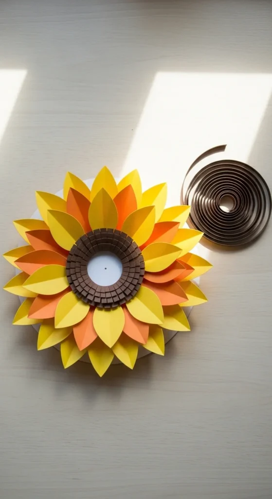 The center is what makes paper sunflowers look realistic. A textured spiral gives that “seed head” effect.