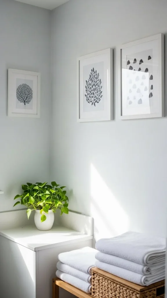 Choose lightweight frames and moisture-friendly materials. Stick to simple designs and neutral tones to keep the space feeling fresh.