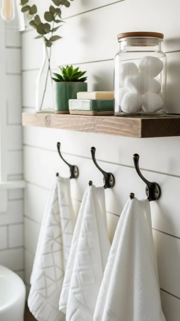 • Add matching hooks for towels or robes