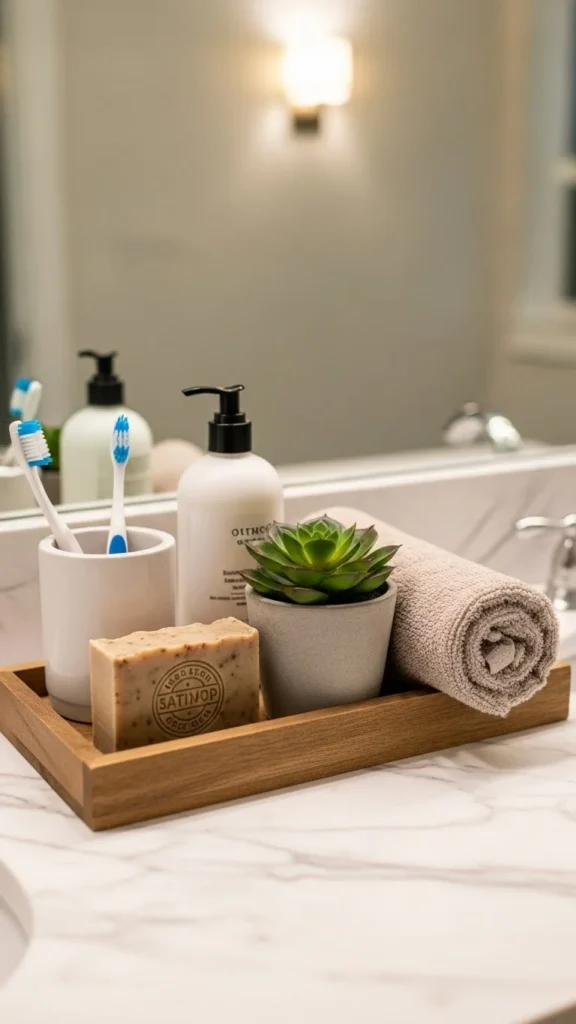 A tidy bathroom always feels more upgraded than a crowded one.