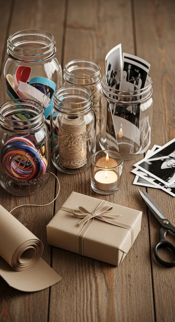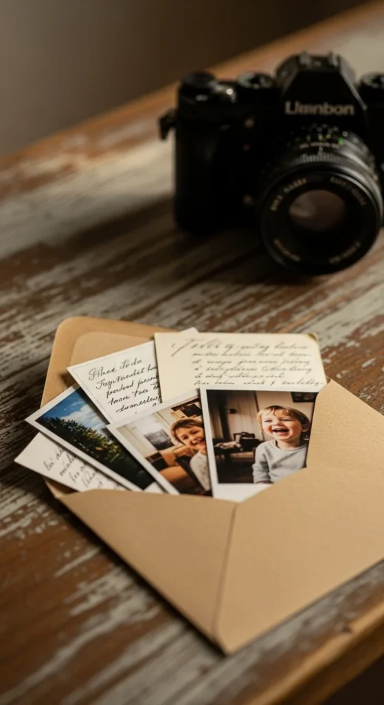 Print a photo strip (four small photos) and create a simple folded card with an inside pocket. Slide the photo strip in and write a short message inside. This looks like a boutique stationery gift but takes very little time.