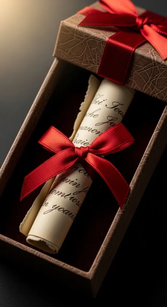 Create simple coupon cards: “One coffee date,” “One walk together,” “One phone-free dinner,” “One help day.” Keep it real and doable. That’s what makes it valuable.