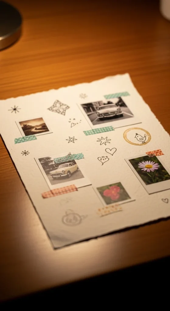 On one page, add a small collage: one photo, a few doodles, and a timeline of 5 key memories. You don’t need fancy supplies. Use glue, tape, and a pen.