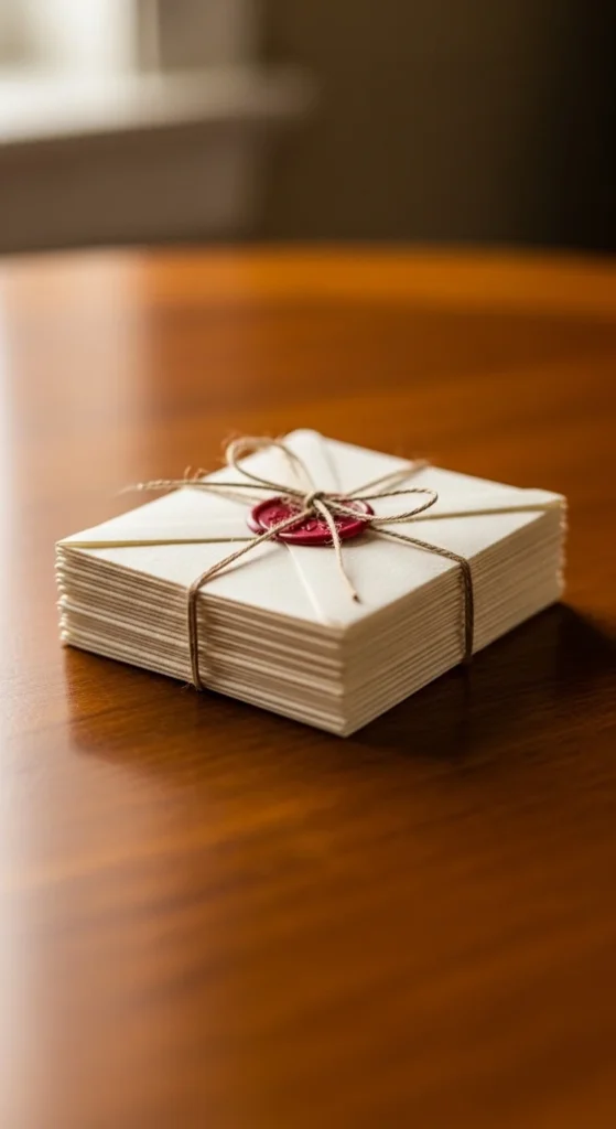 Cut paper into small notes and write prompts like “Open when you feel stressed,” “Open when you need a laugh,” and “Open when you want motivation.” Put each note into a mini envelope. Tie the bundle with ribbon or twine.