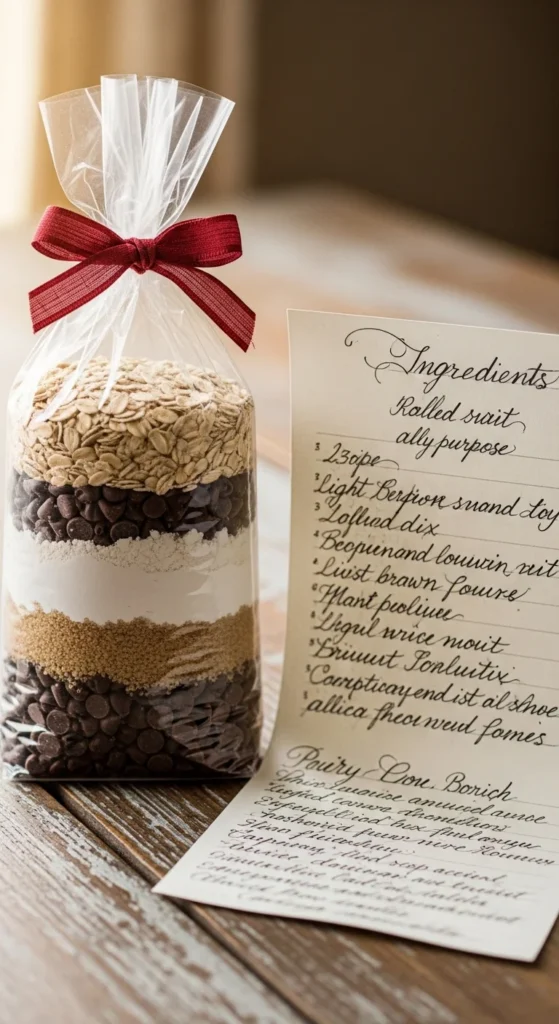 This works even if you can’t perfectly layer ingredients. The key is clear instructions and a personal note. Add chocolate chips, oats, or sprinkles if you have them.